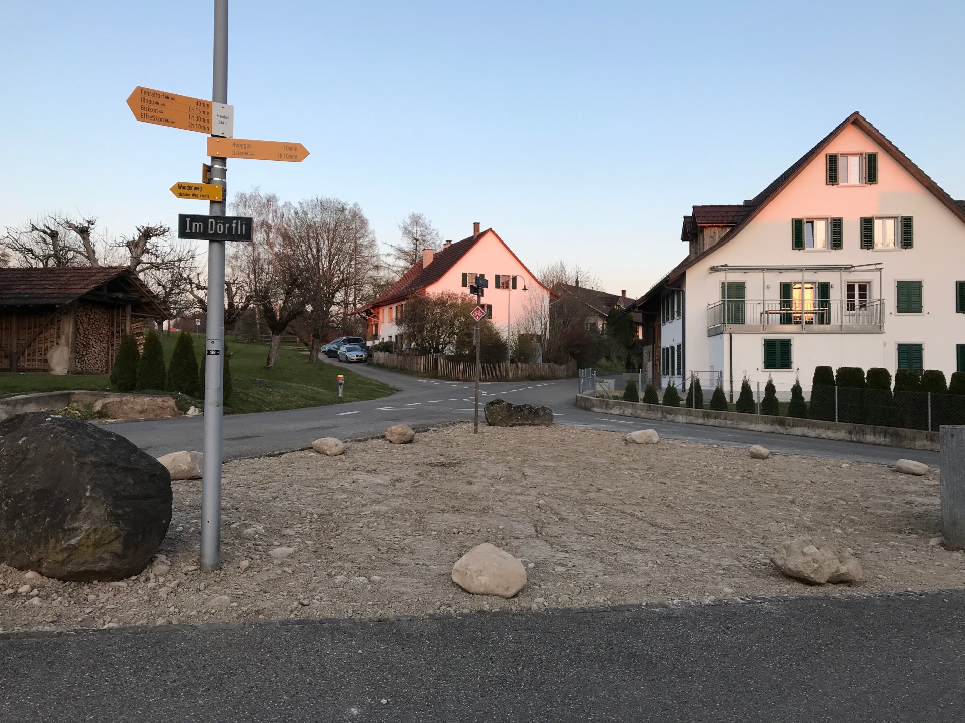 Die Blumeninsel im Verkehrsdreieck Schwendistrasse/Freudwilerstrasse bleibt lange Zeit sehr karg.