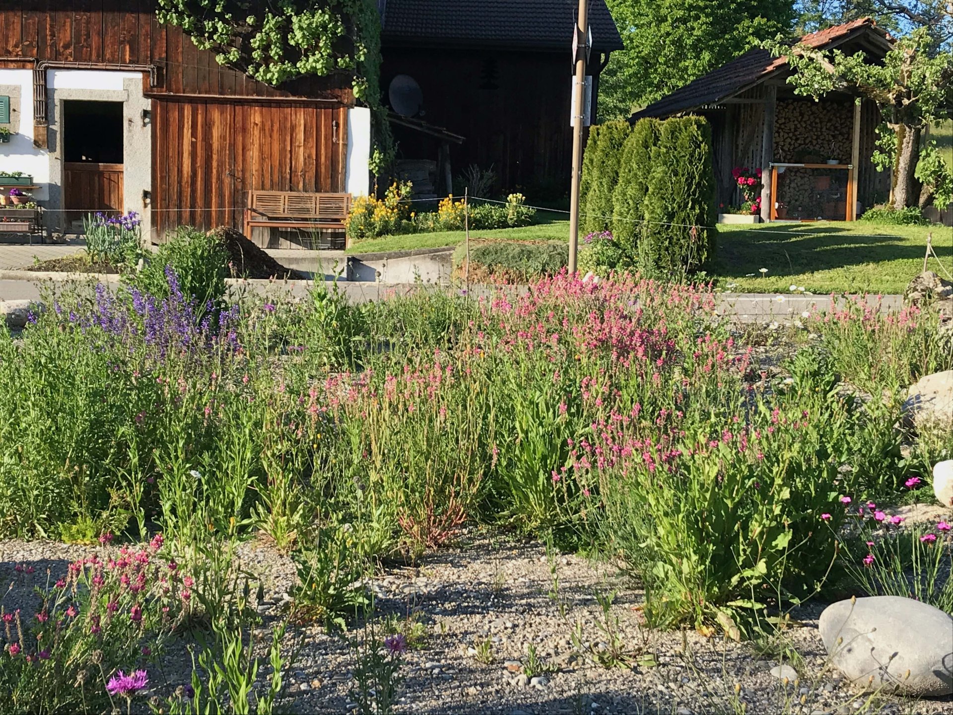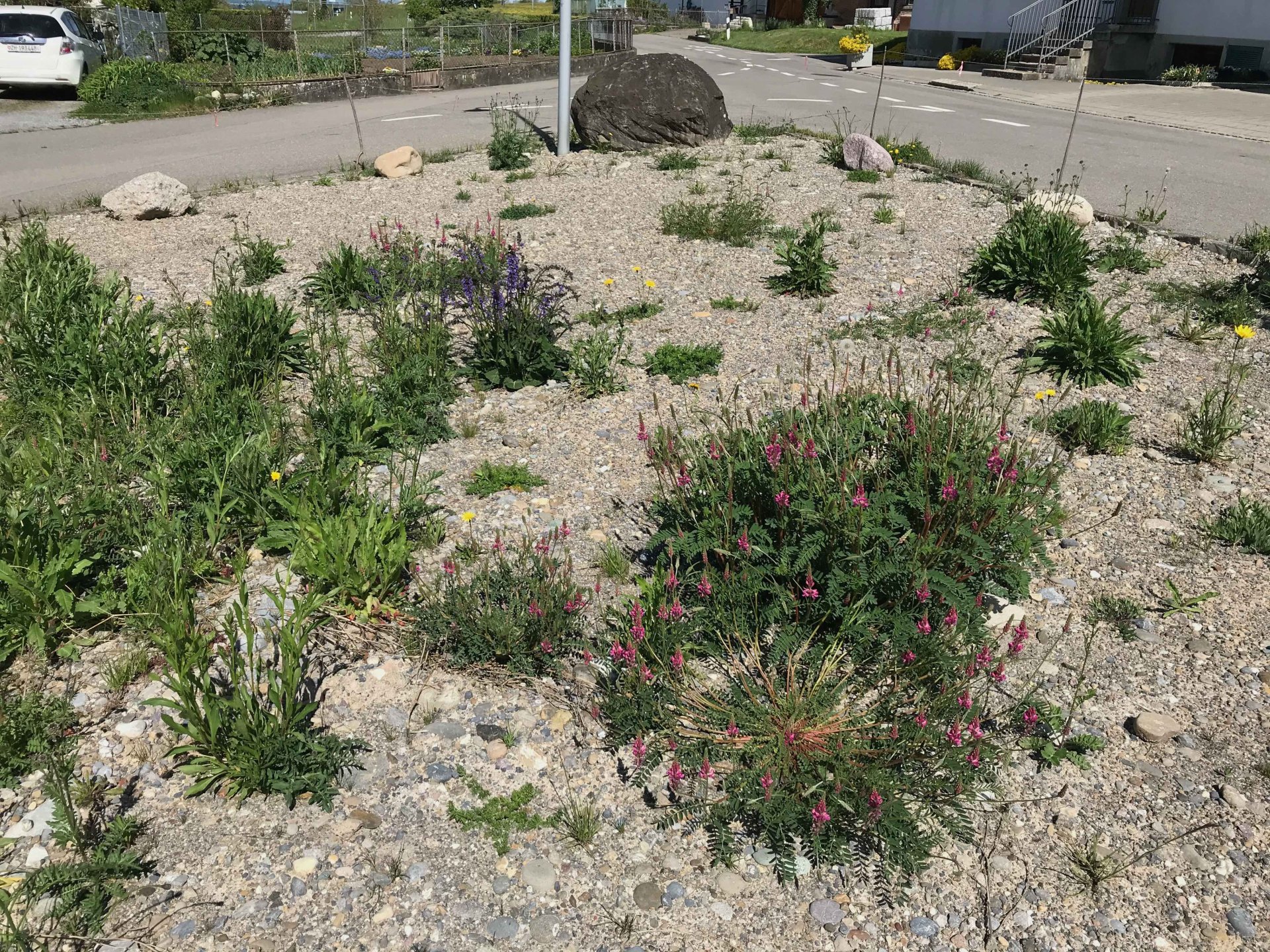 Im Frühling erfolgt dann die Bepflanzung, in Zusammenarbeit mit unserem lokalen Gartenbauer, Andi Hürlimann. Dann braucht es ein wenig Geduld, im ersten Jahr wird die Insel etwas karg aussehen.